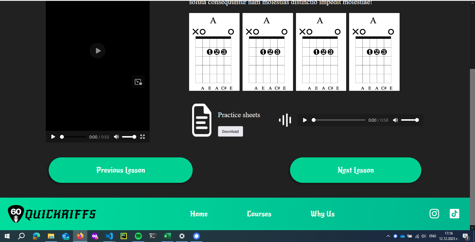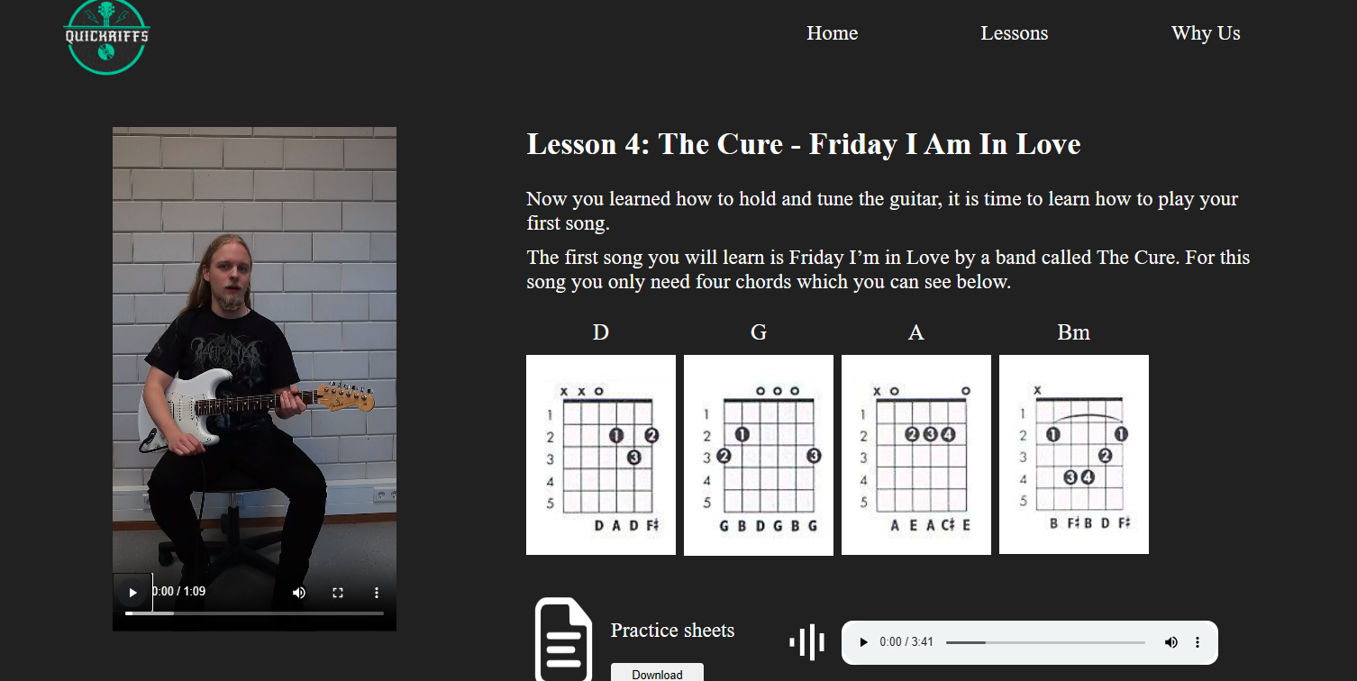 In the group project I worked on the pages for every single guitar lesson. Therefore I had to make it so