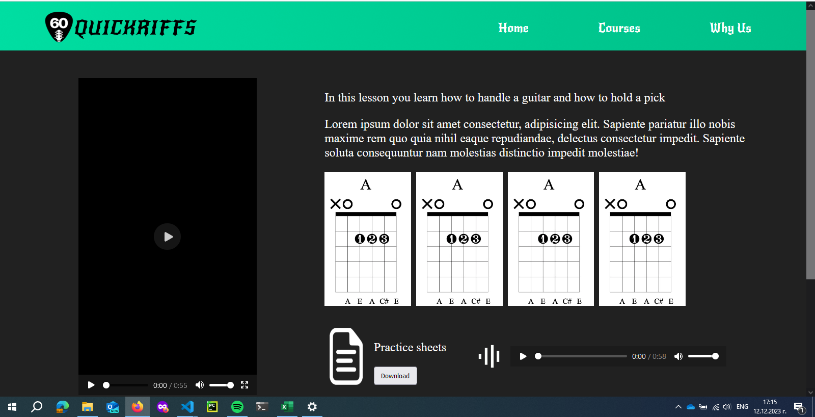 In the group project I worked on the pages for every single guitar lesson. Therefore I had to make it so
